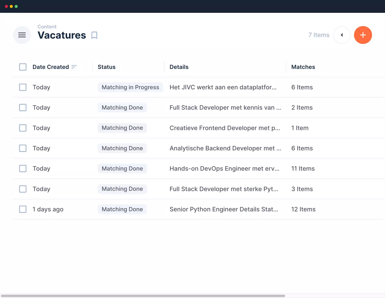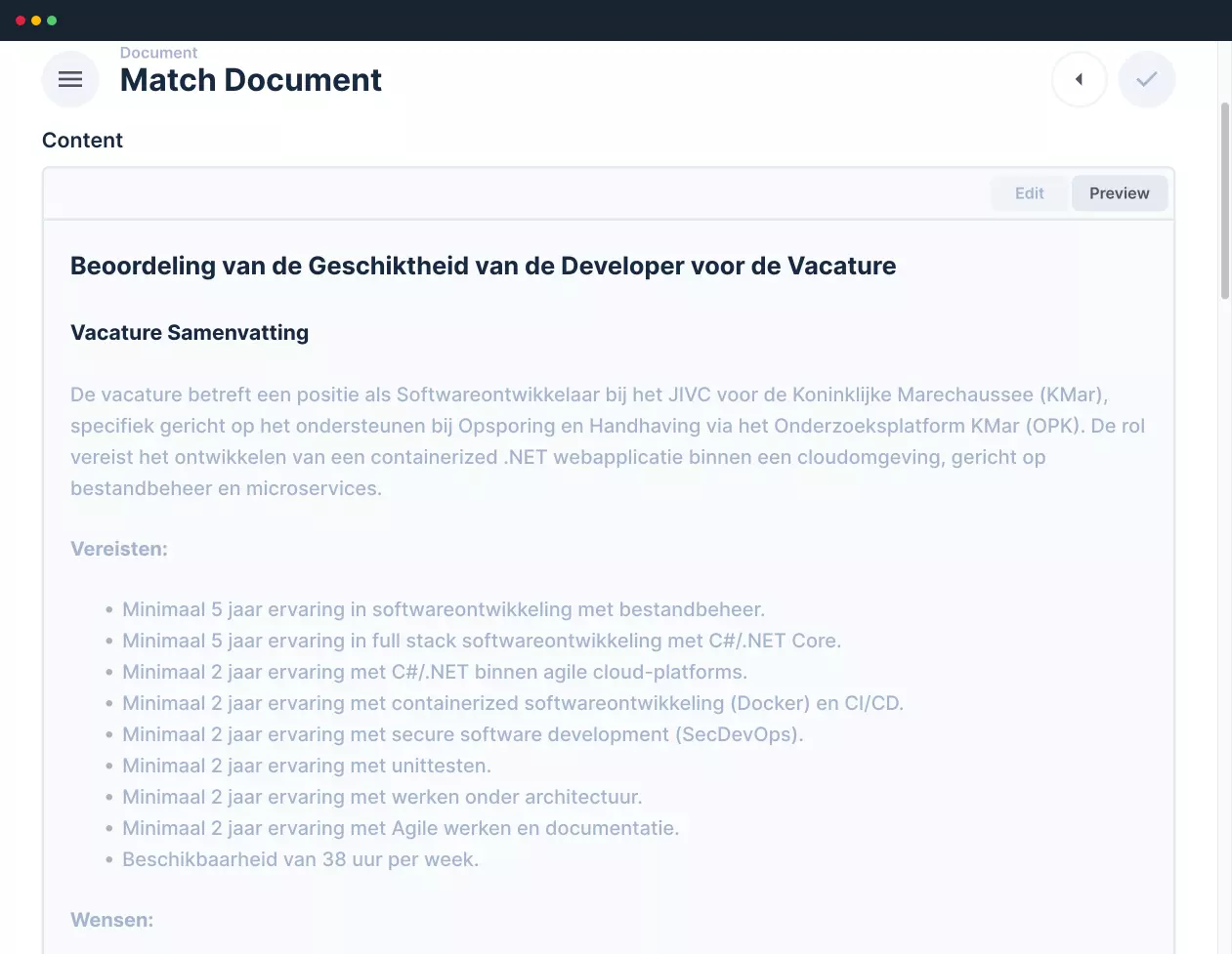 De Match App is een spliksplinternieuwe uitvinding. Een webapplicatie waarmee je helemaal zelfstandig matches met nerds kunt maken. Een kwestie van je vacatureomschrijving toevoegen en precies doen wat onze AI-assistent zegt. Het enige wat jij hoeft te doen is de scores beoordelen en een match selecteren. Keertje proberen? Scroll dan even helemaal naar beneden, want we hebben voor de eerste 100 gebruikers een woestaantrekkelijk aanbod.